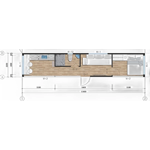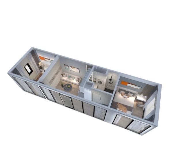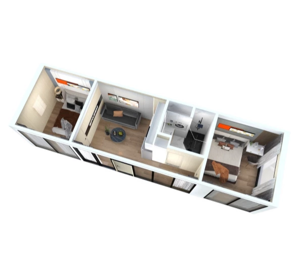 40ft: Two bedrooms, one living room, one kitchen, and one bathroom; suitable for families or shared use