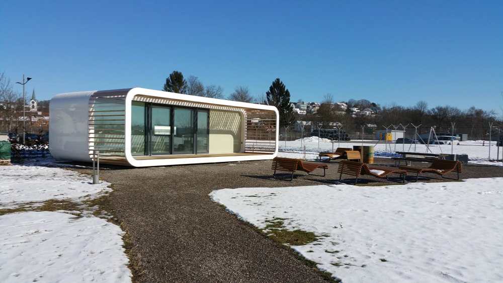 Characteristically streamlined and minimalist, the pod houses perfectly blend natural elements with modern architectural aesthetics. Whether placed in the mountains, by the sea, or in an urban courtyard, its unique shape and texture become a visual focal point, showcasing modern people's pursuit of a balance between nature and art.